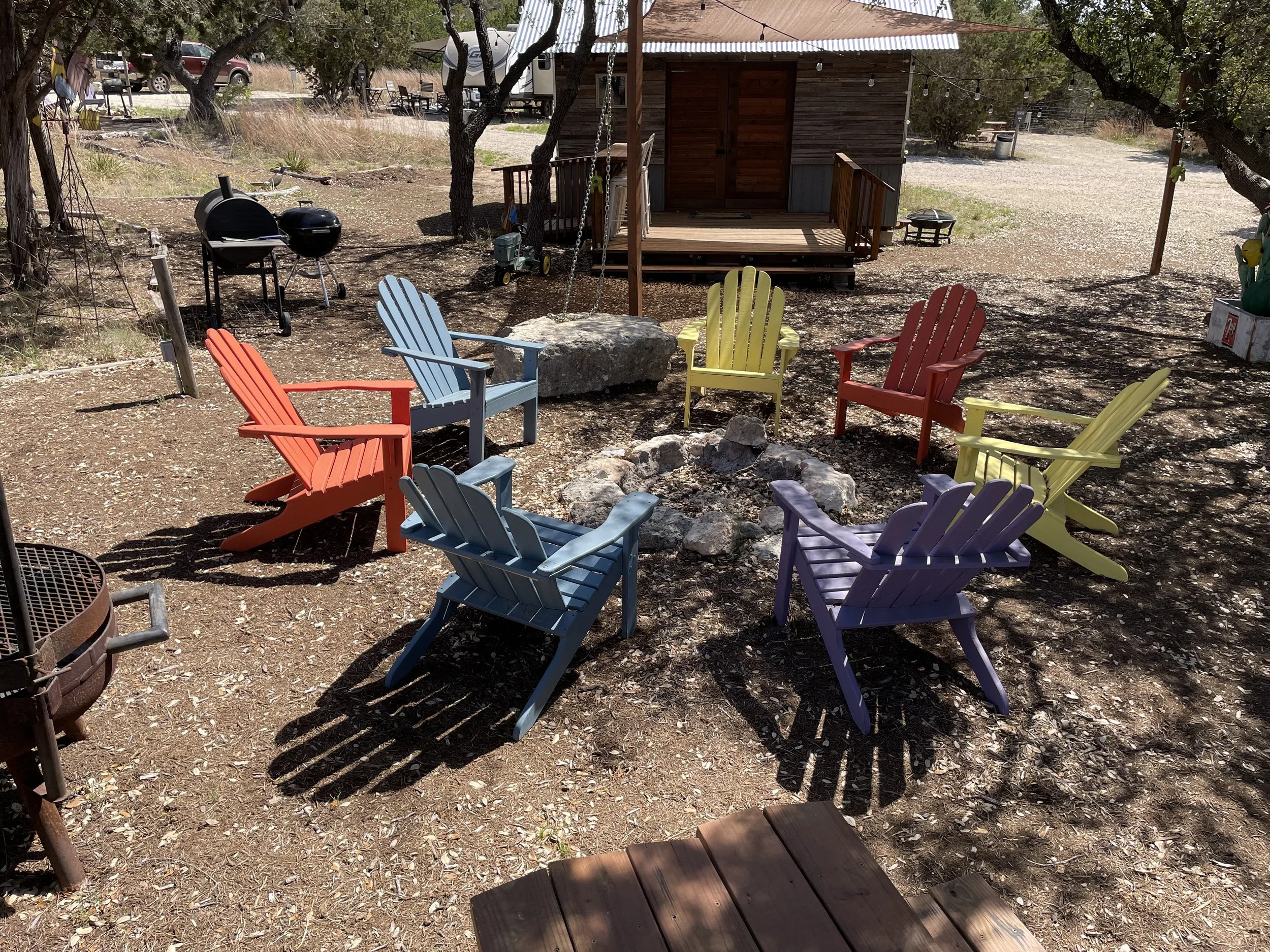 Adirondack Chairs stained with Mountain Cedar located at local wedding Venue