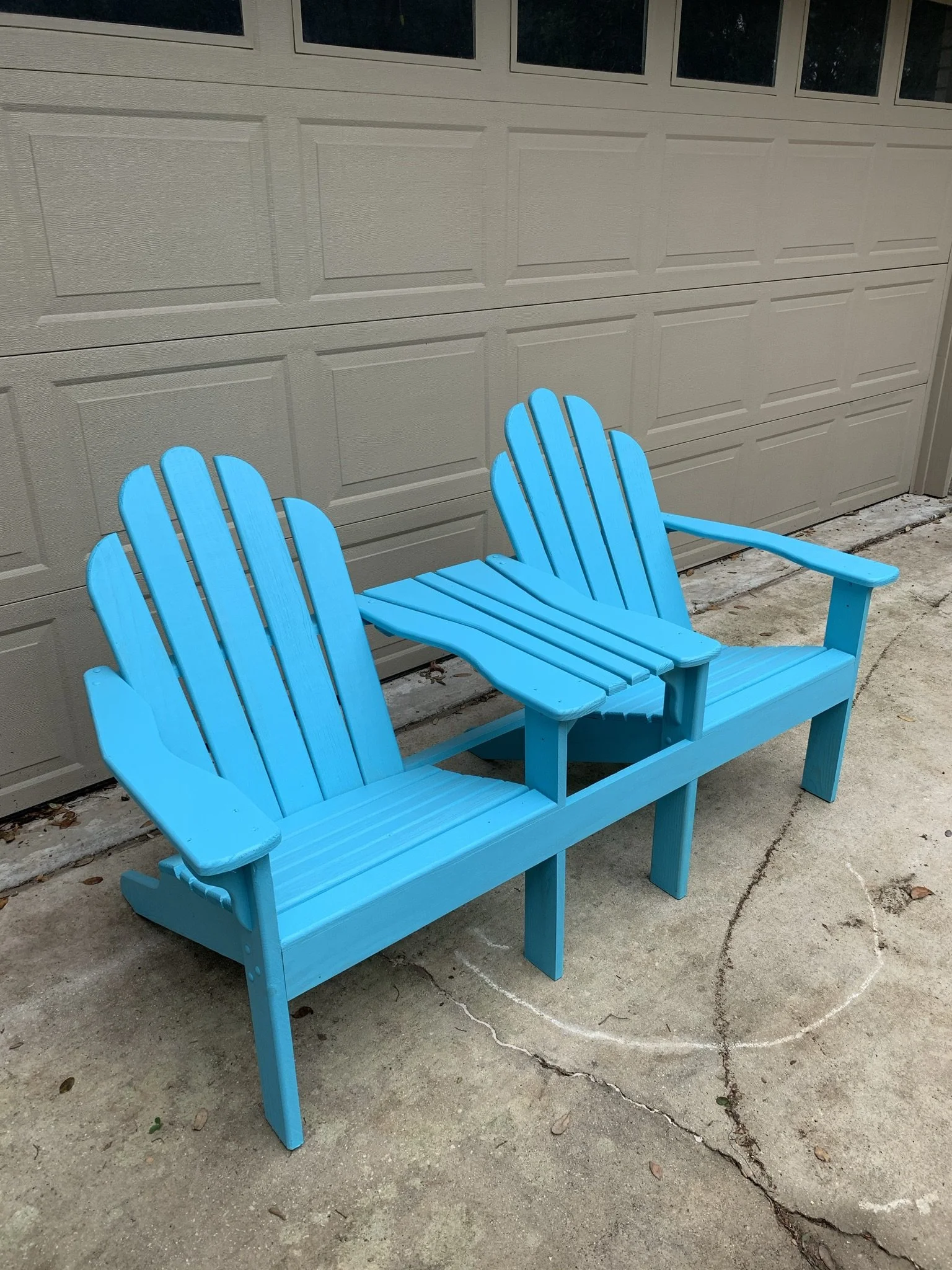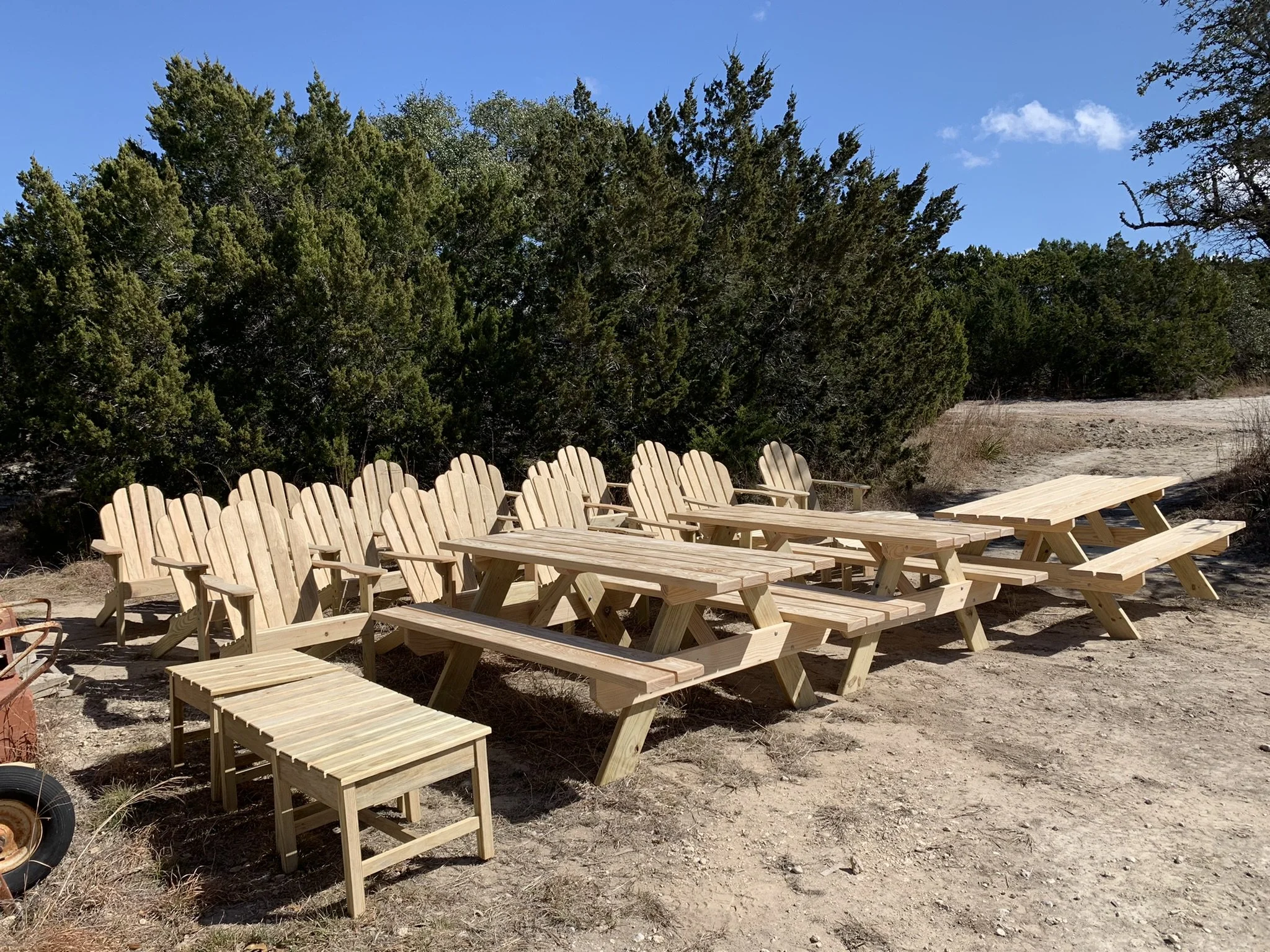 Unfinished set of chairs, tables, and picnic tables for local Air B&B